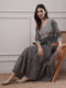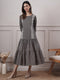 OFF WHITE PRINTED COTTON  DRESS-dress-COTTON-Ivory-Black-Mandarin Neck-3/4 Sleeves-A-Line-Printed-