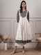 OFF WHITE PRINTED ANARKALI KURTA WITH HAND EMBROIDERY--COTTON-Ivory-Black-Mandarin Neck-3/4 Sleeves-A-Line-Printed-Hand Embroidery