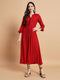 CORAL COLOUR, VISCOSE KURTA WITH FOIL PRINT, GOTA AND PLEATED YOKE