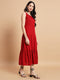 CORAL COLOUR, VISCOSE KURTA WITH FOIL PRINT, GOTA AND PLEATED YOKE