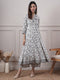 YOKEBLACK ANARKALI KURTA WITH HAND EMBROIDERED --COTTON-Black-Ivory-Mandarin Neck-3/4 Sleeves-A-Line-Printed-Hand Embroidery